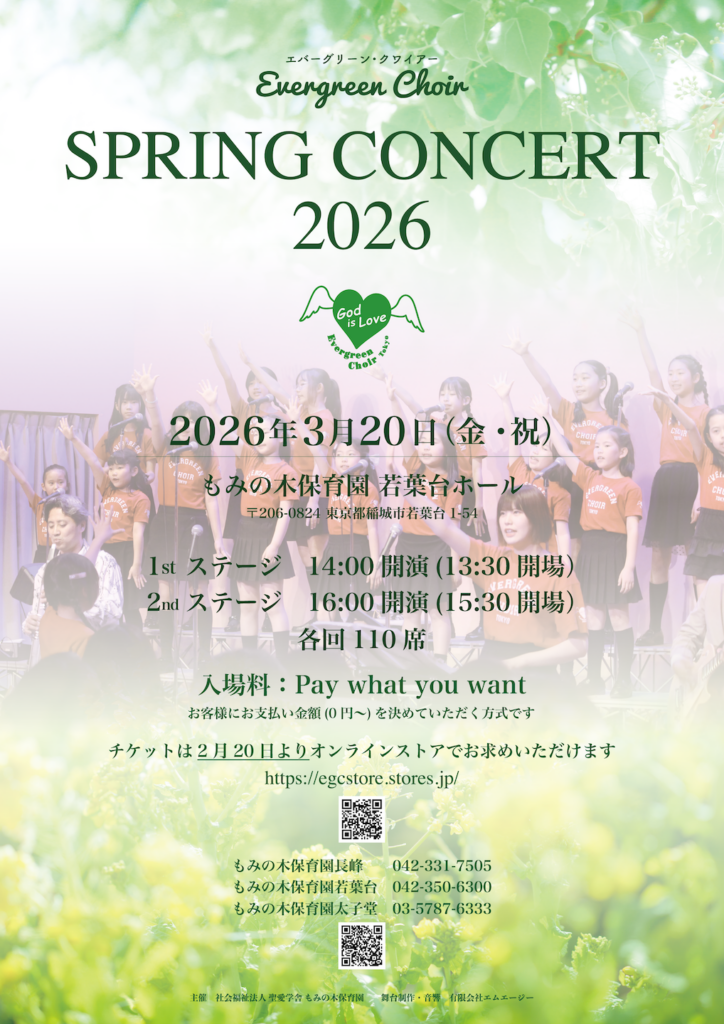 2026年3月20日(金・祝)、春の定期公演「SpringConcert2026」が、東京都稲城市にある、もみの木保育園 若葉台ホールにて開催されます。